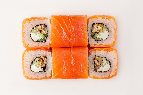 Форель, Угорь. Рис, Нори, Креметте, Огурец.