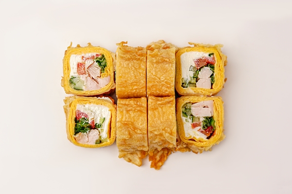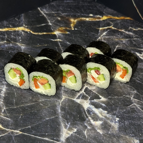 Рис, Нори, Креметте, Огурец, Помидор, Лист салата, Перец болгарский.