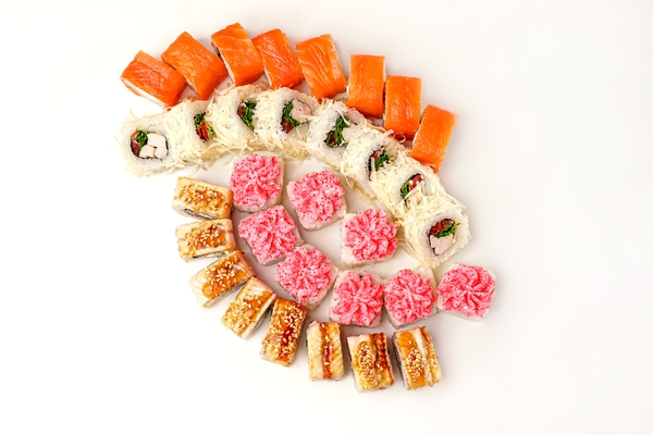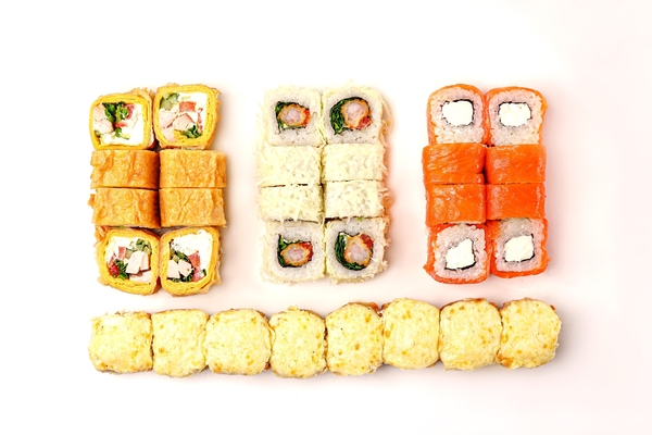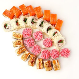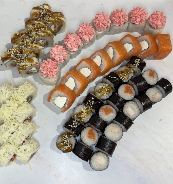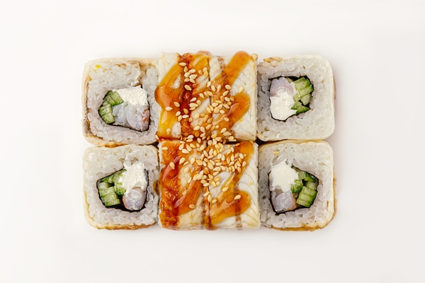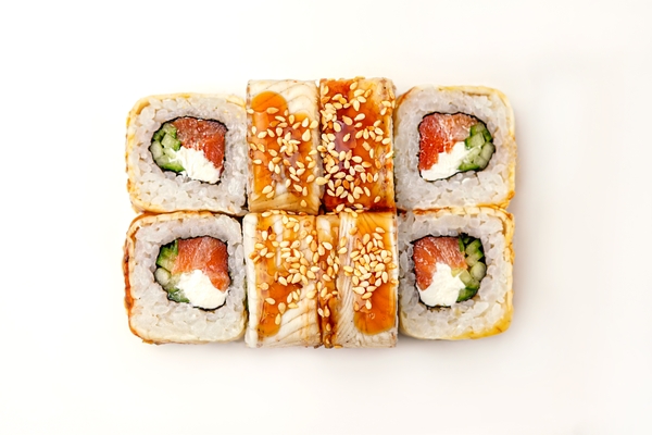Нори, Рис, Креметте, Огурец, Форель, Угорь, Масаго, Терияки, Кунжут.