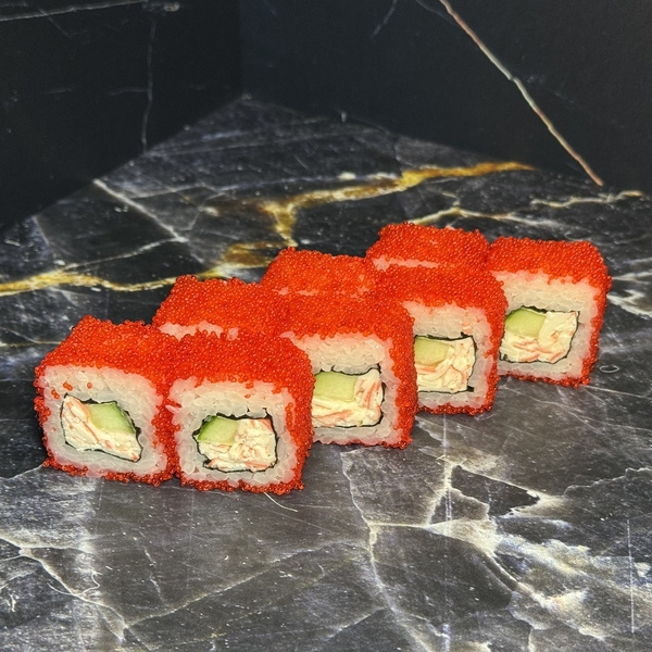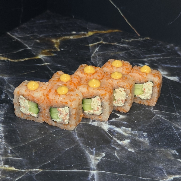 Снежный краб, Рис, Нори, Огурец, Масаго, Соус спайси.