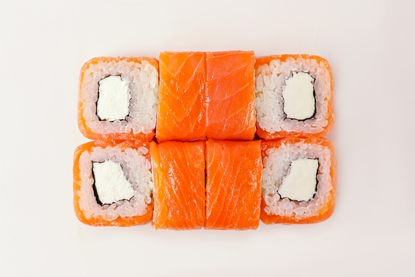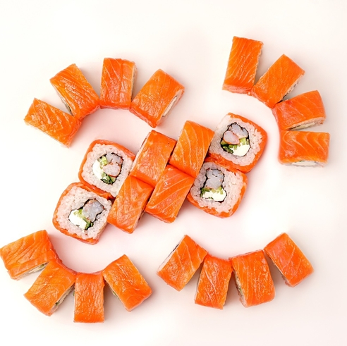 Форель х/к, Рис, Нори, Креметте, Омлет томаго, Огурец.
