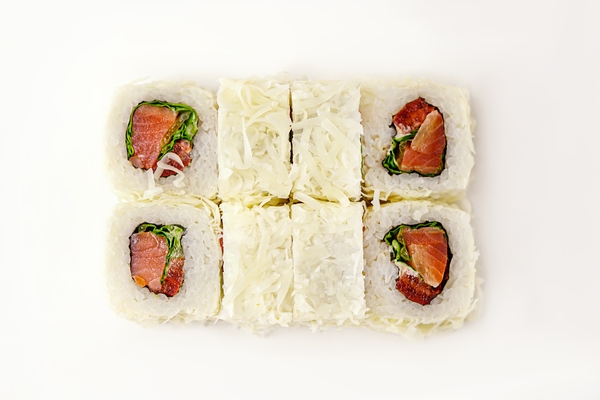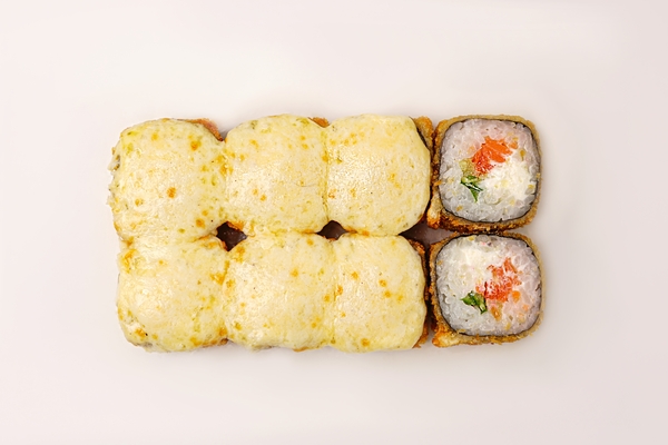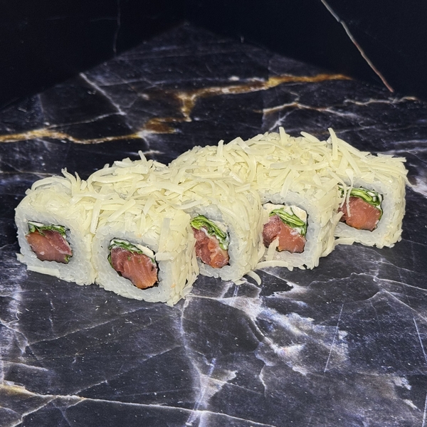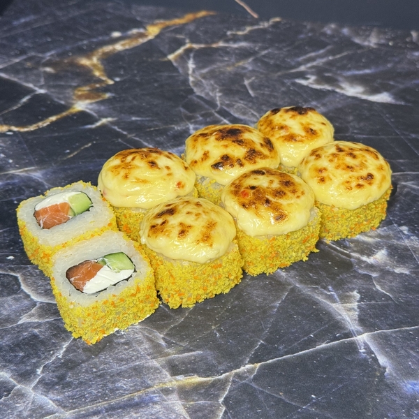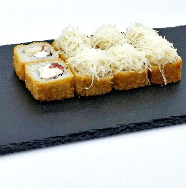 Форель, Рис, Нори, Креметте, Огурец, Панко, Шапочка моцарелла.