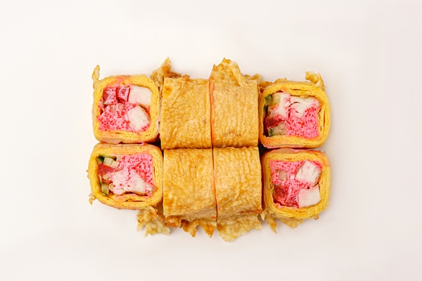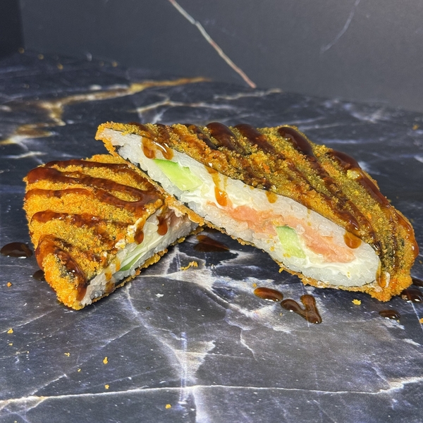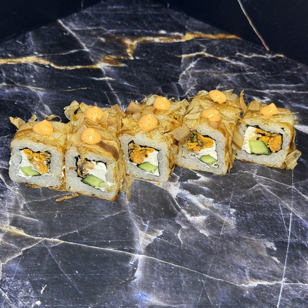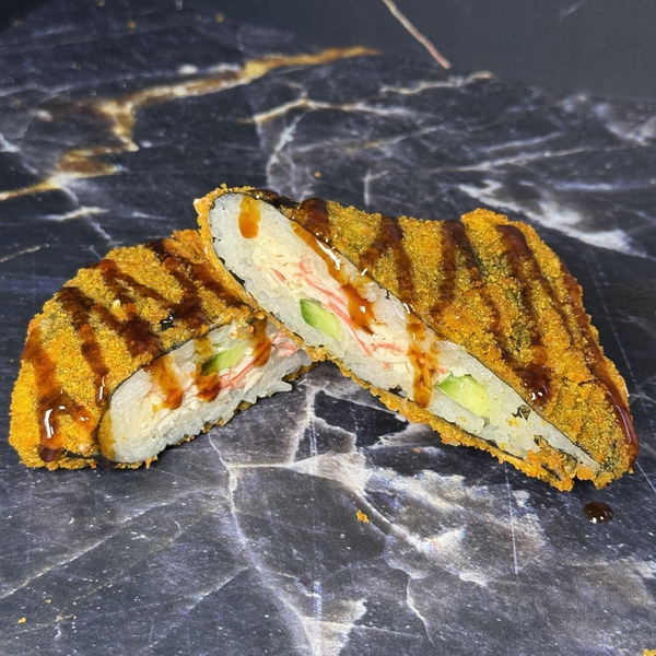Снежный краб, Рис, Нори, Огурец, Кляр, Панко, Терияки.