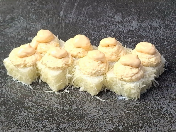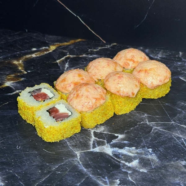 Тунец, Рис, Нори, Креметте, Помидор, Панко, Шапочка моцарелла с масаго.
