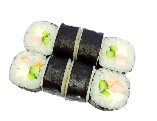 Креветка, Рис, Нори, Креметте, Огурец, Масаго, Шапочка моцарелла.