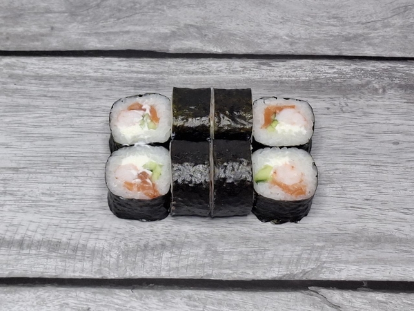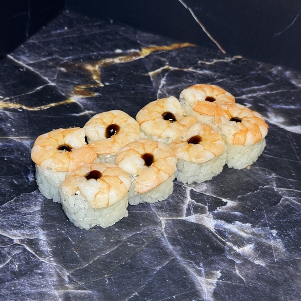Креветка, Рис, Нори, Креметте, Томаго, Соус устричный.