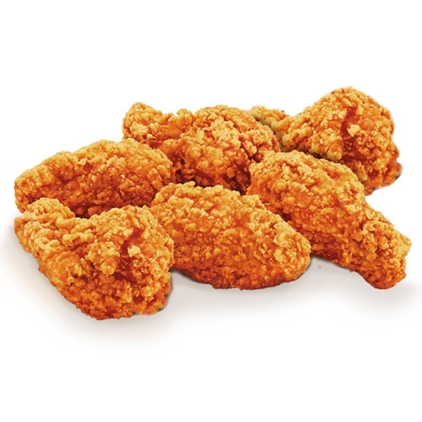 Куринные крылышки в панировке, политые соусом терияки и посыпанные кунжутом. Подаются с кисло-сладким соусом.